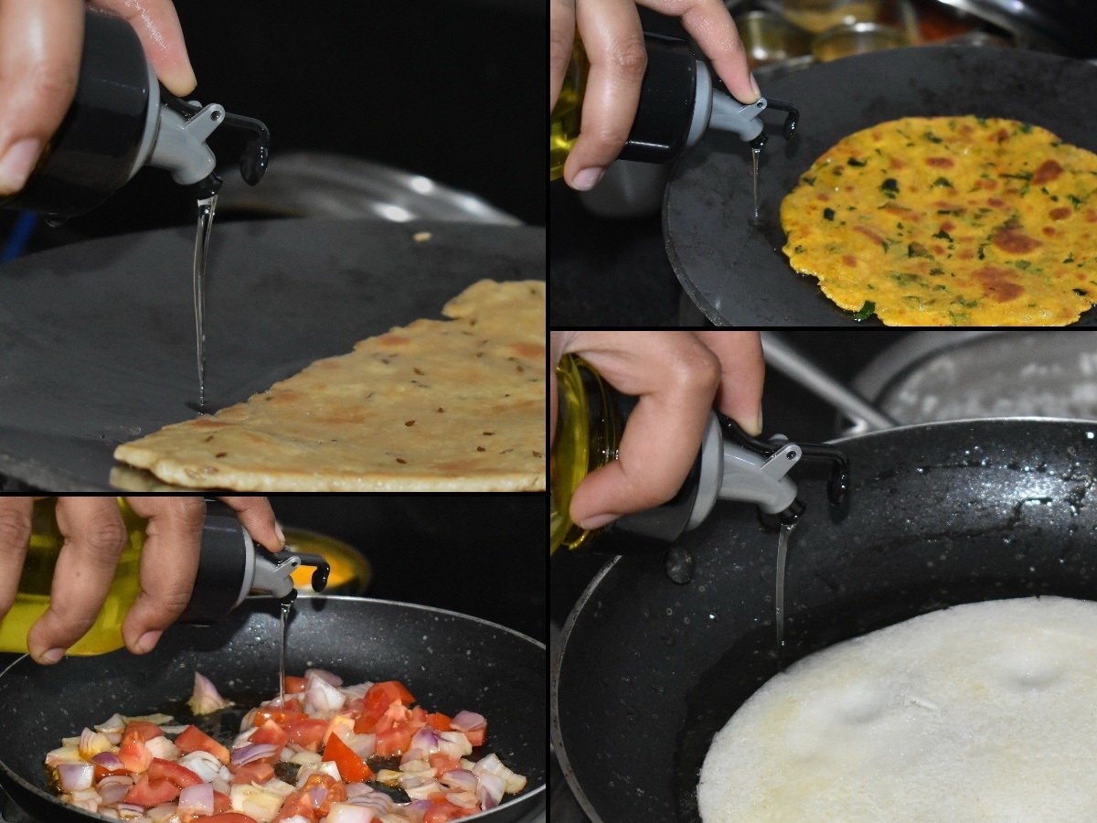 2138 1 liter oil dispenser with lid—clear, drip-free spout, controlled use (Plastic material)
